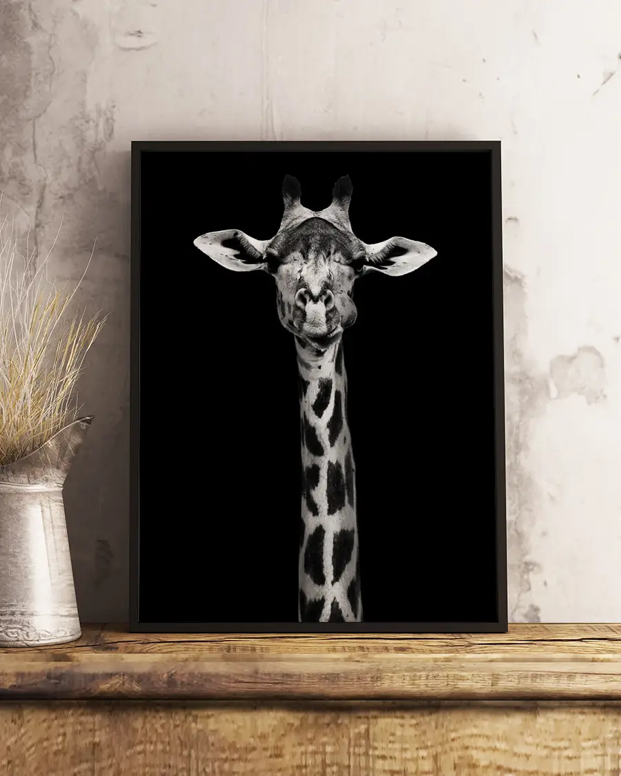 Giraffe Portrait - Poster - Svartvitt fotografi.