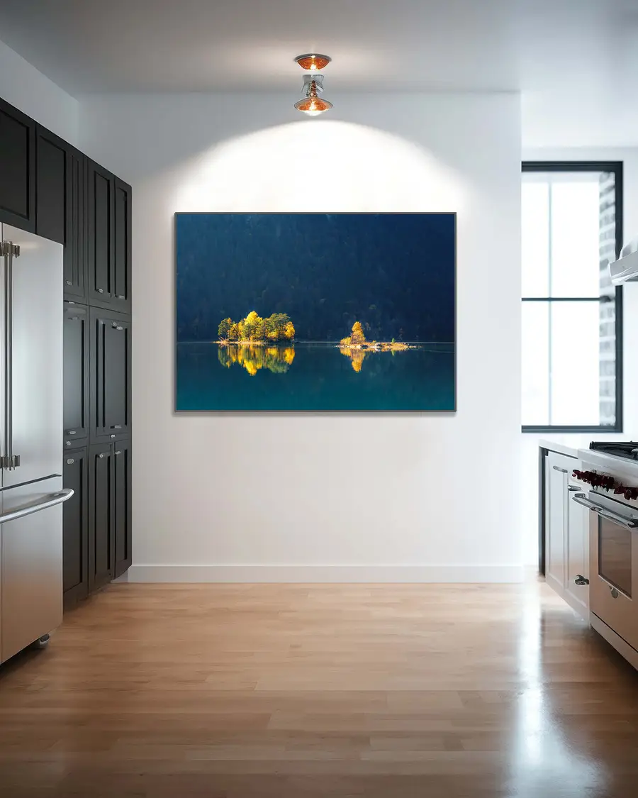 Glödande öar i en stilla sjö – Poster – Fotografi