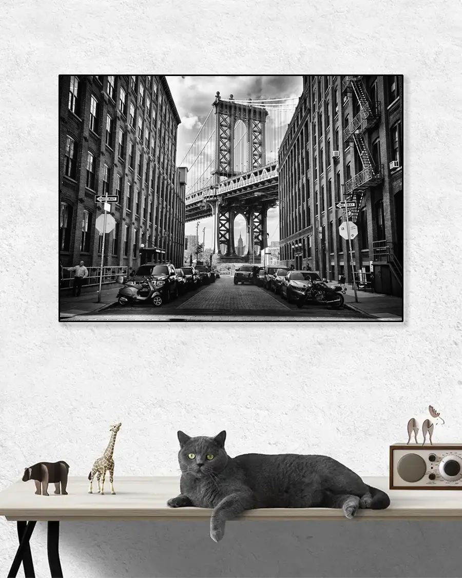 Fotokonst i både färg och svartvitt. Grafiska bilder och läckra stadsbilder som: New Yorks skyline, ikoniska taxibilar, livfulla gator och mycket mer.