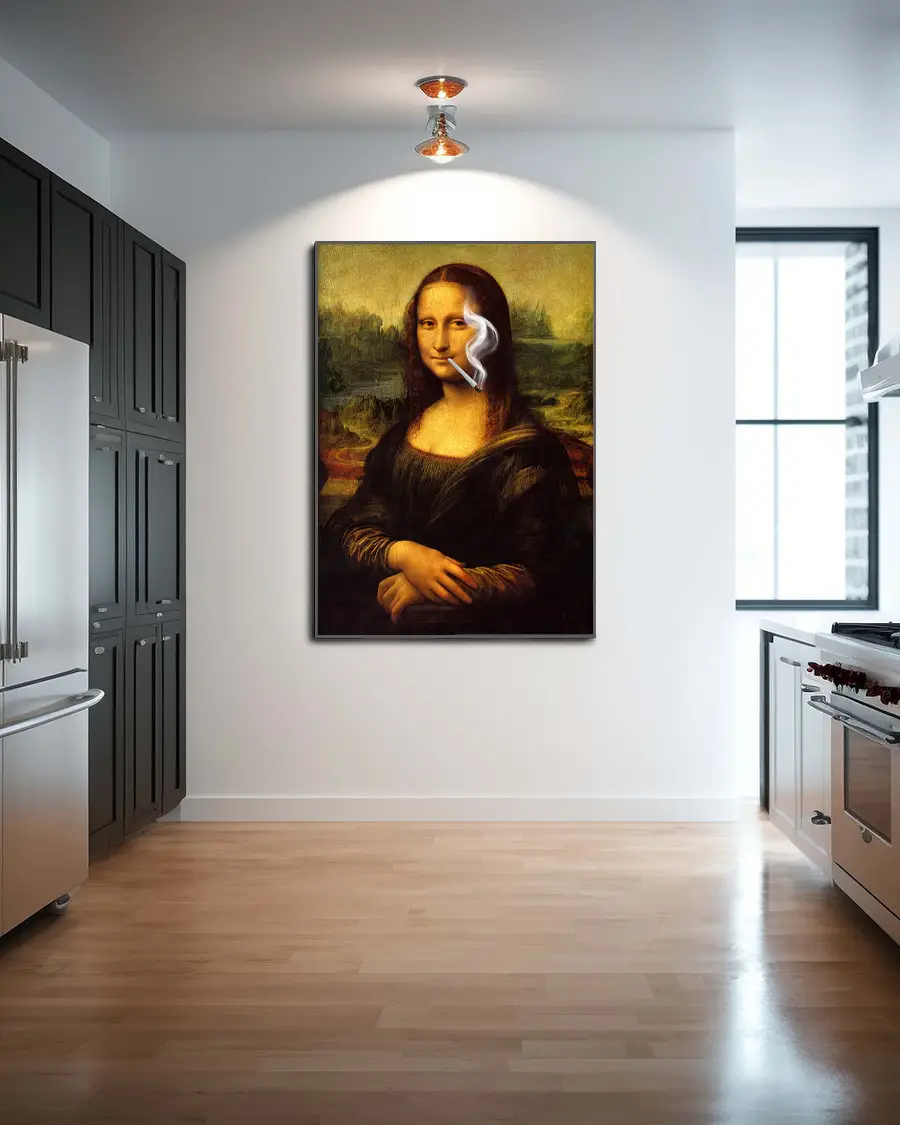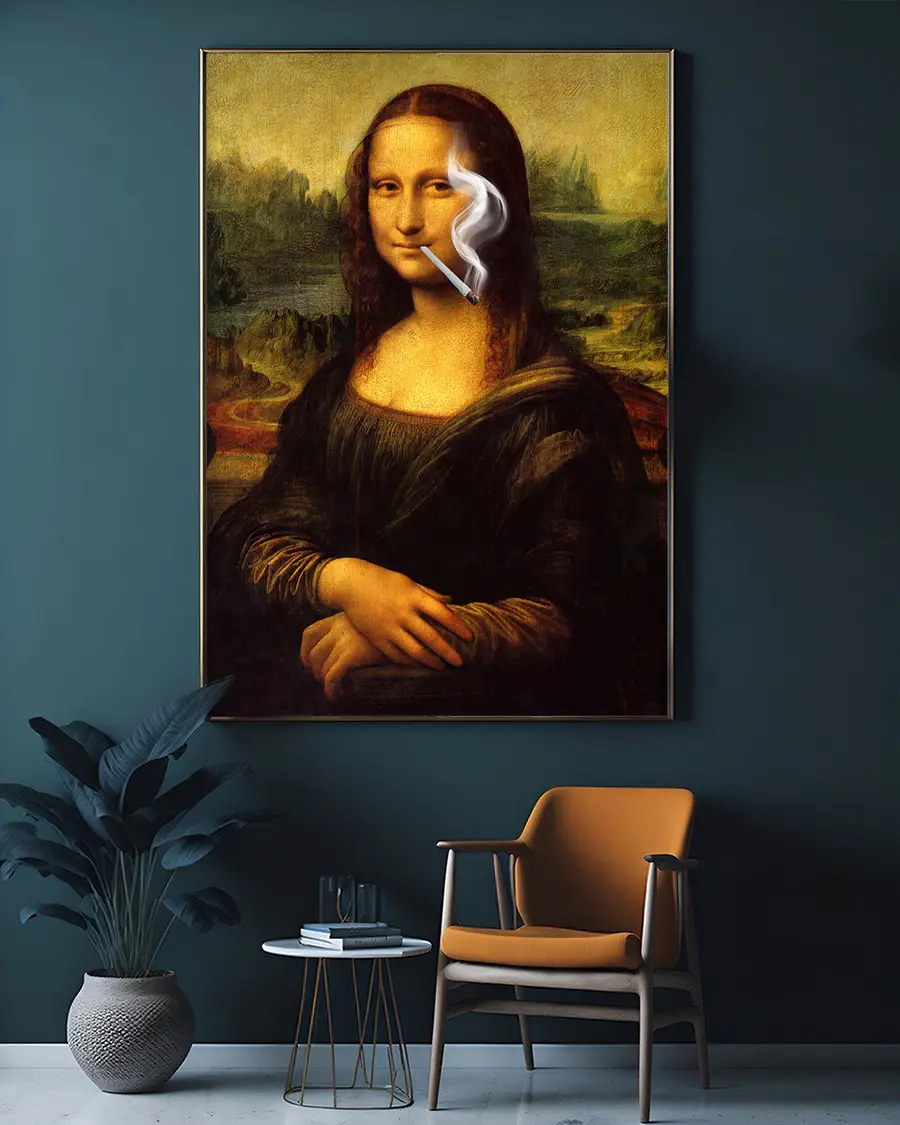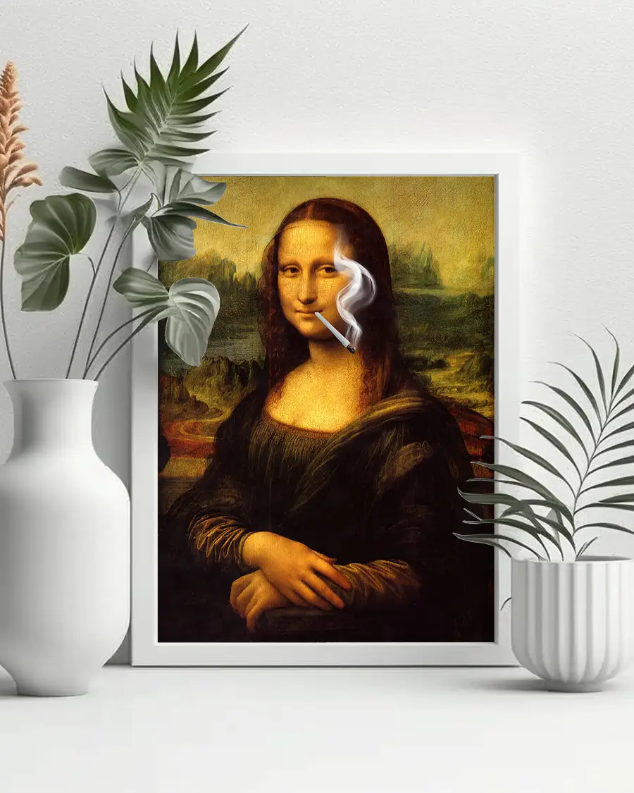 En lekfull och oväntad tolkning av ett av världens mest kända konstverk. I Mona Lisa Röker På möter klassisk renässans modern humor när det ikoniska porträttet får en kaxig och avslappnad twist som bryter mot alla traditionella ramar.